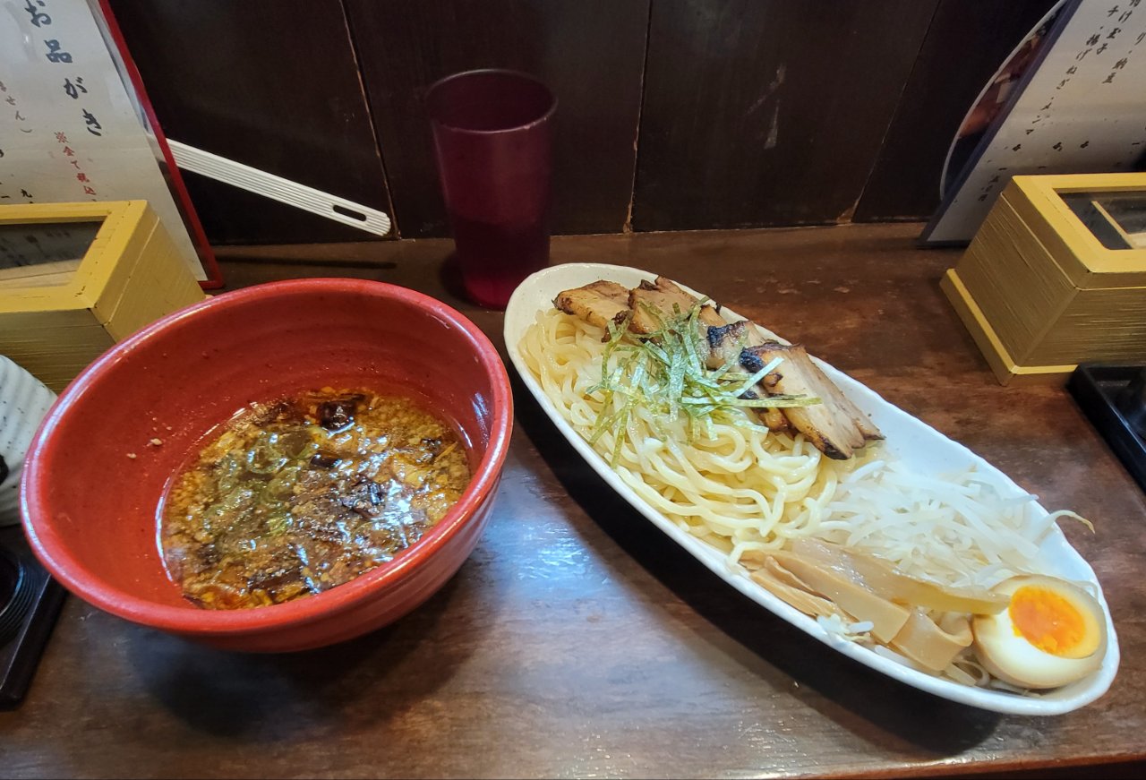 看板メニューのからし麺も美味しそうだったのですが、今回は炙りチャーシューつけ麺を選びました。