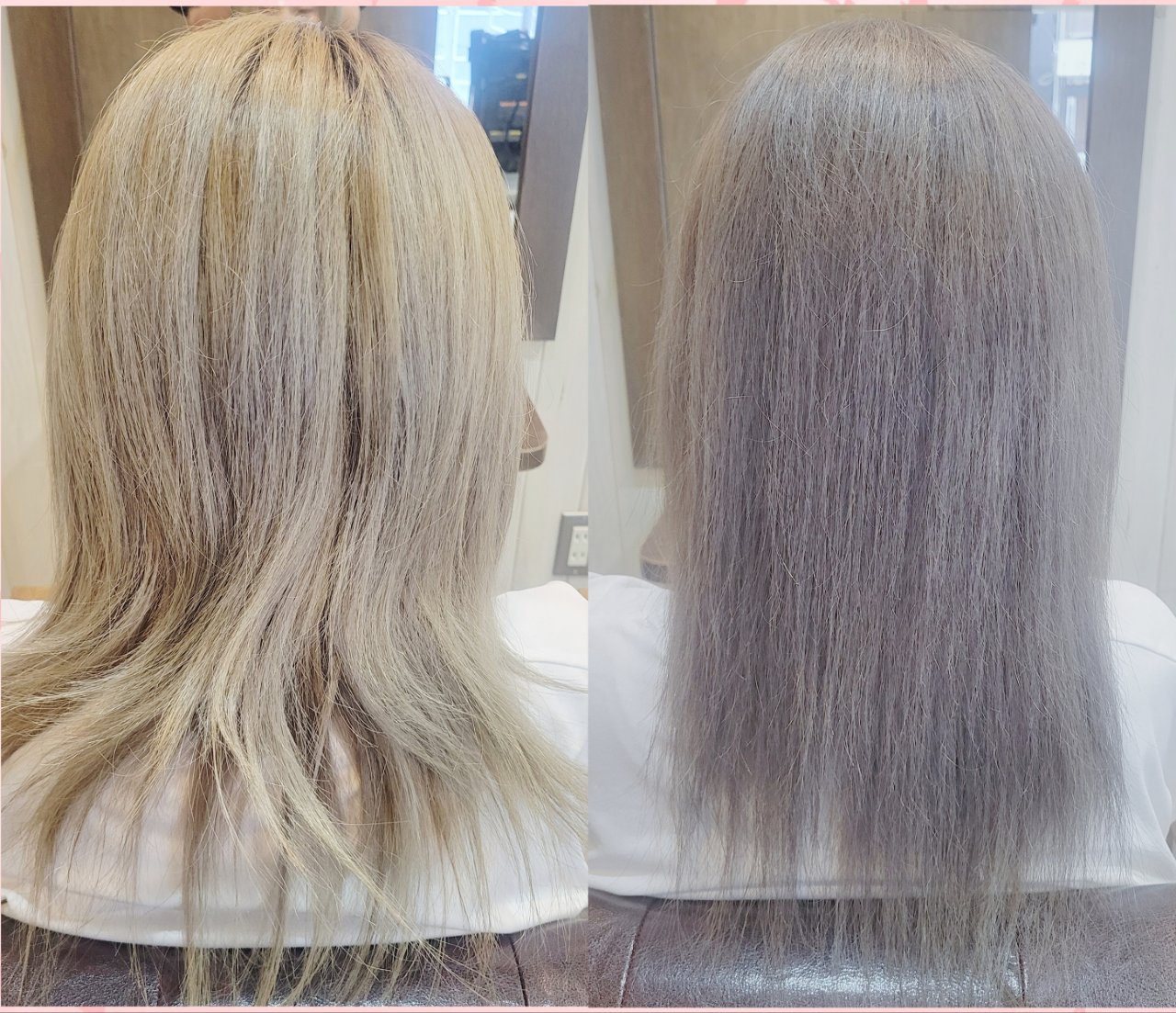 綺麗に色を出すにはベースの色をブリーチして明るくしなければシルバーが出づらいです。